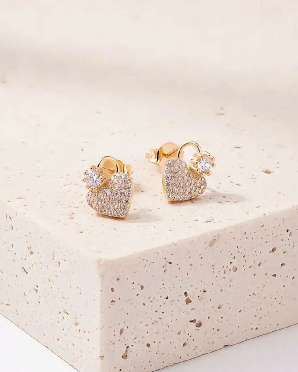 Los Aretes Corazón Lumière elaborados en oro laminado y decorados con finas piedras brillantes que capturan la luz en cada movimiento. Su diseño romántico y sofisticado los convierte en el complemento perfecto para realzar cualquier look, desde el más casual hasta el más especial.
