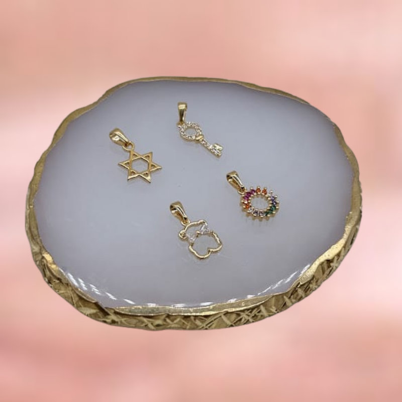 Los Dijes Amira han sido creados para quienes buscan portar un símbolo con significado especial. Elaborados en oro laminado, están disponibles en cuatro variaciones diferentes, cada una con su propio estilo y esencia: