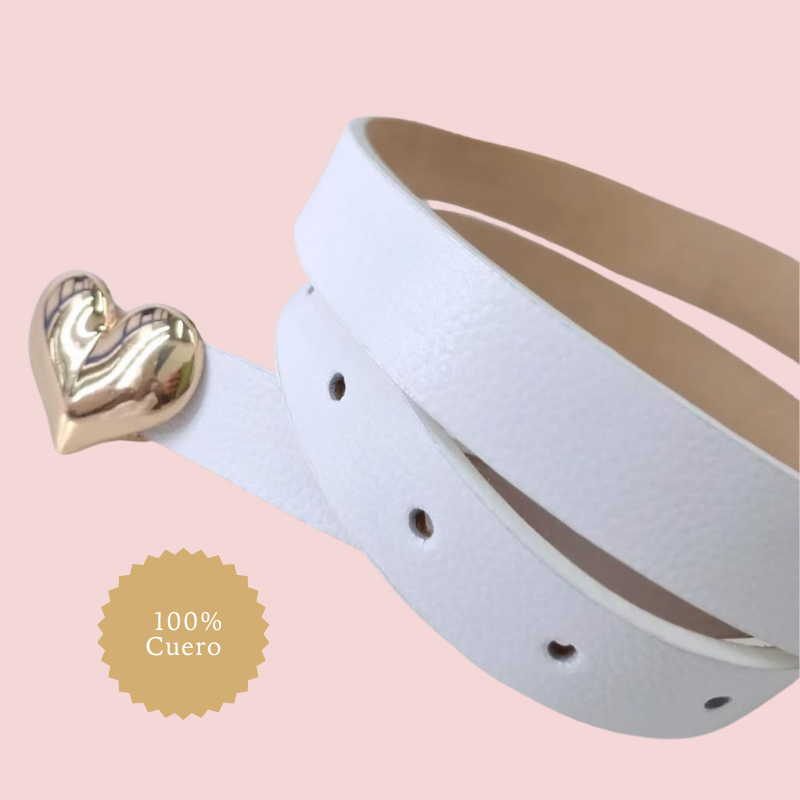 El Cinturón Amor Real de Princess Amira está diseñado para las mujeres que quieren llevar elegancia y dulzura en un solo accesorio. Confeccionado en 100% cuero genuino, este cinturón en tono blanco cuenta con una delicada hebilla metálica en forma de corazón dorado, que lo convierte en una pieza única, romántica y sofisticada.