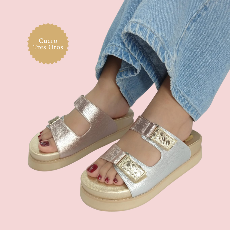 La Sandalia Nura – Esencia Oriental está diseñada para mujeres que buscan elegancia artesanal sin sacrificar comodidad. Su estructura en cuero genuino, doble tira ancha ajustable y hebillas metálicas decorativas le dan un aire sofisticado con toques árabes.