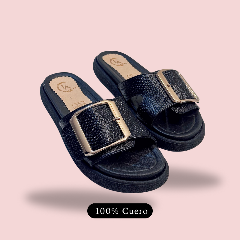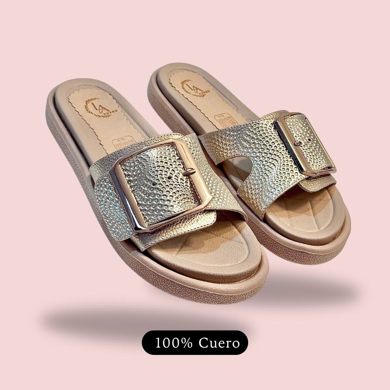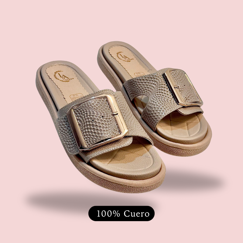 Las Sandalias Amira Luxe combinan lujo artesanal y comodidad diaria. Confeccionadas en 100% cuero, estas sandalias tipo slide están diseñadas para mujeres que buscan un calzado funcional, sofisticado y fácil de combinar. Su amplia hebilla metálica le aporta un toque moderno y refinado, ideal tanto para días de descanso como para looks casual chic.