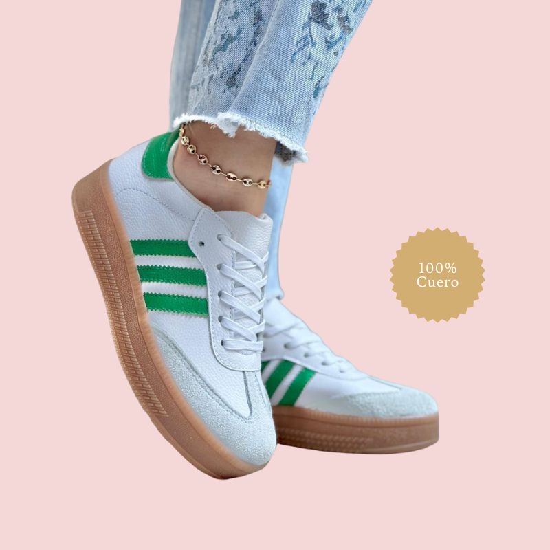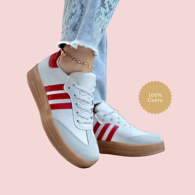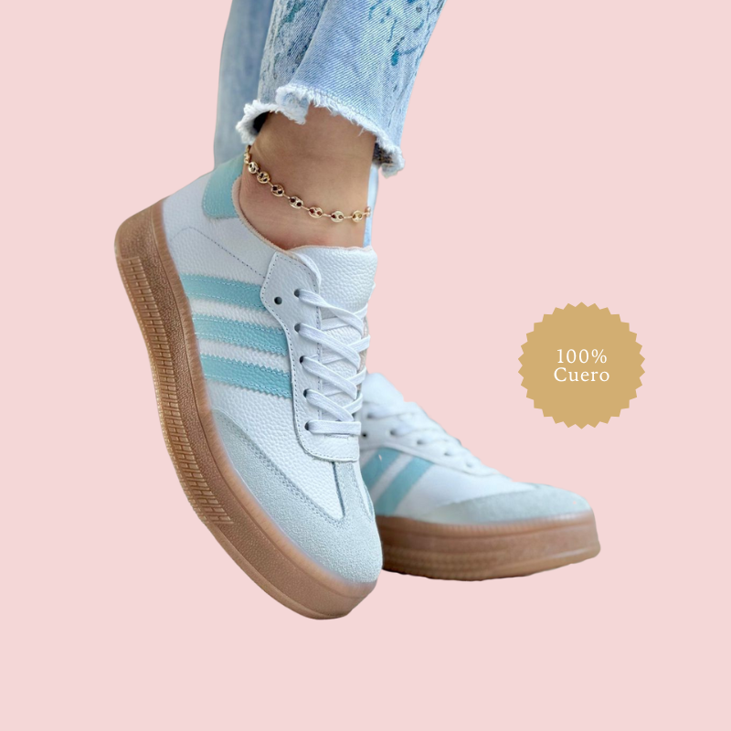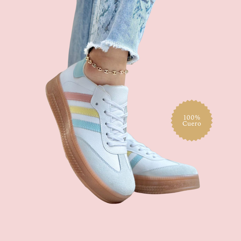 Los Tenis Medina Sport de Princess Amira combinan el estilo deportivo clásico con la calidad y elegancia de la marca. Fabricados en 100% cuero, cuentan con suela de goma antideslizante y plantilla acolchada para mayor confort. Sus distintivas franjas laterales, disponibles en diversos colores, evocan la energía y diversidad de las históricas medinas árabes. Ideales para quienes buscan comodidad, durabilidad y un toque de color en su calzado diario.