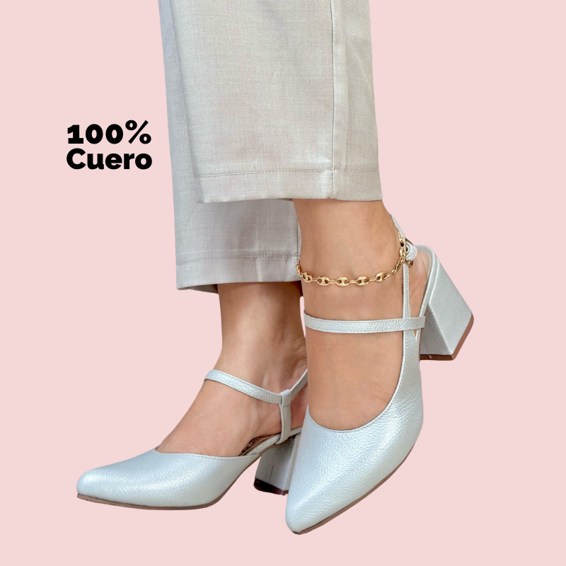 Descubre los Amira Elif, un diseño slingback en cuero 100% natural que redefine la elegancia atemporal. Su tacón bloque medio, punta fina y delicada correa cruzada crean una silueta refinada que estiliza la figura y garantiza comodidad durante todo el día. Disponibles en una paleta de colores cuidadosamente seleccionados, estos zapatos son ideales para mujeres que buscan destacar con sutileza y sofisticación, ya sea en la oficina o en una ocasión especial.